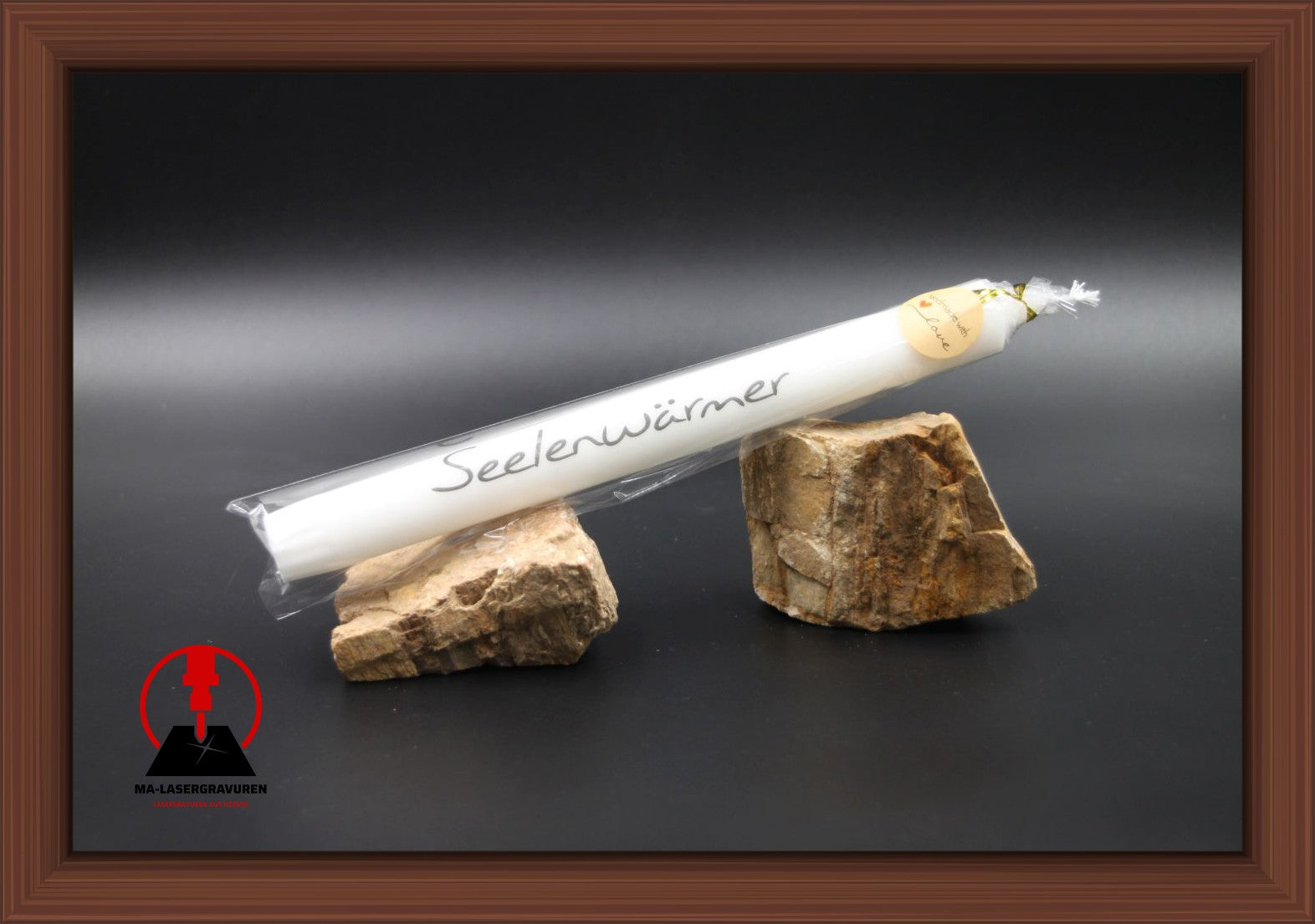 Stabkerze mit Druck "Seelenwärmer". Ein schönes kleines Geschenk.