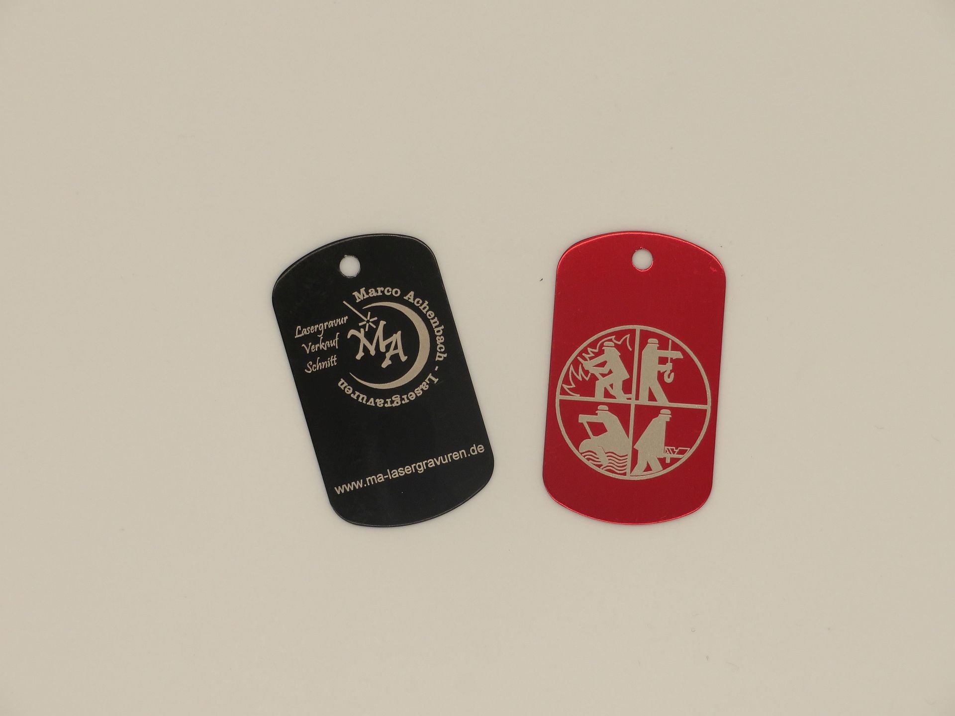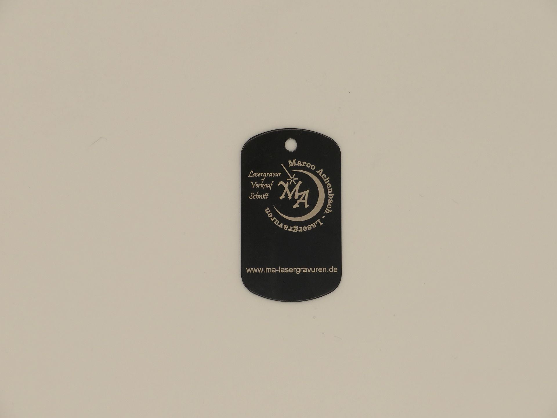 Anhänger aus eloxiertem Aluminium in der Form des Militäranhängers. Der Anhänger kann von beiden Seiten graviert werden und ist in verschiedenen Farben erhältlich.