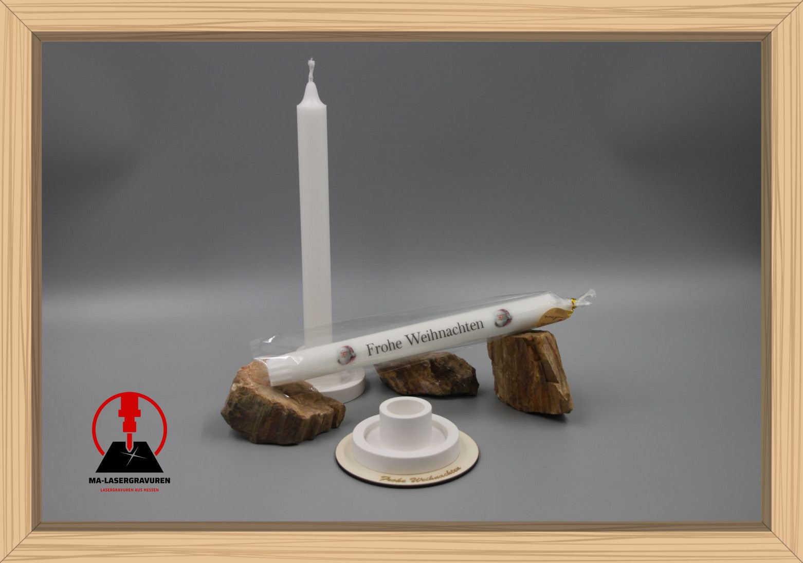 Set Kerze 240 & Stabkerzenhalter groß"Frohe Weihnachten" Typ A