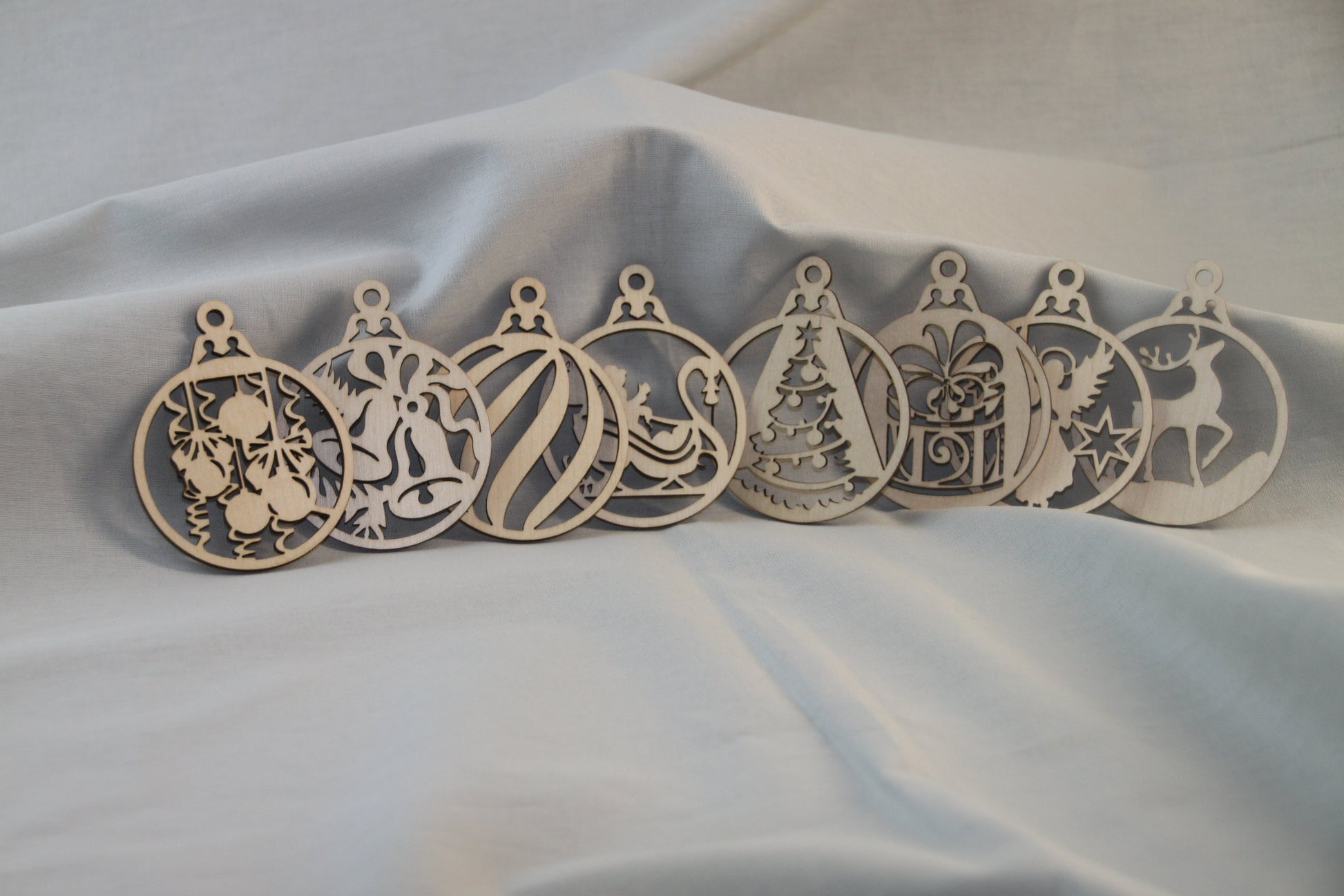 Eine Box aus Holz mit acht Aufhängern, die unterschiedliche Motive haben für den Weihnachtsbaum. Ein schönes Geschenk.